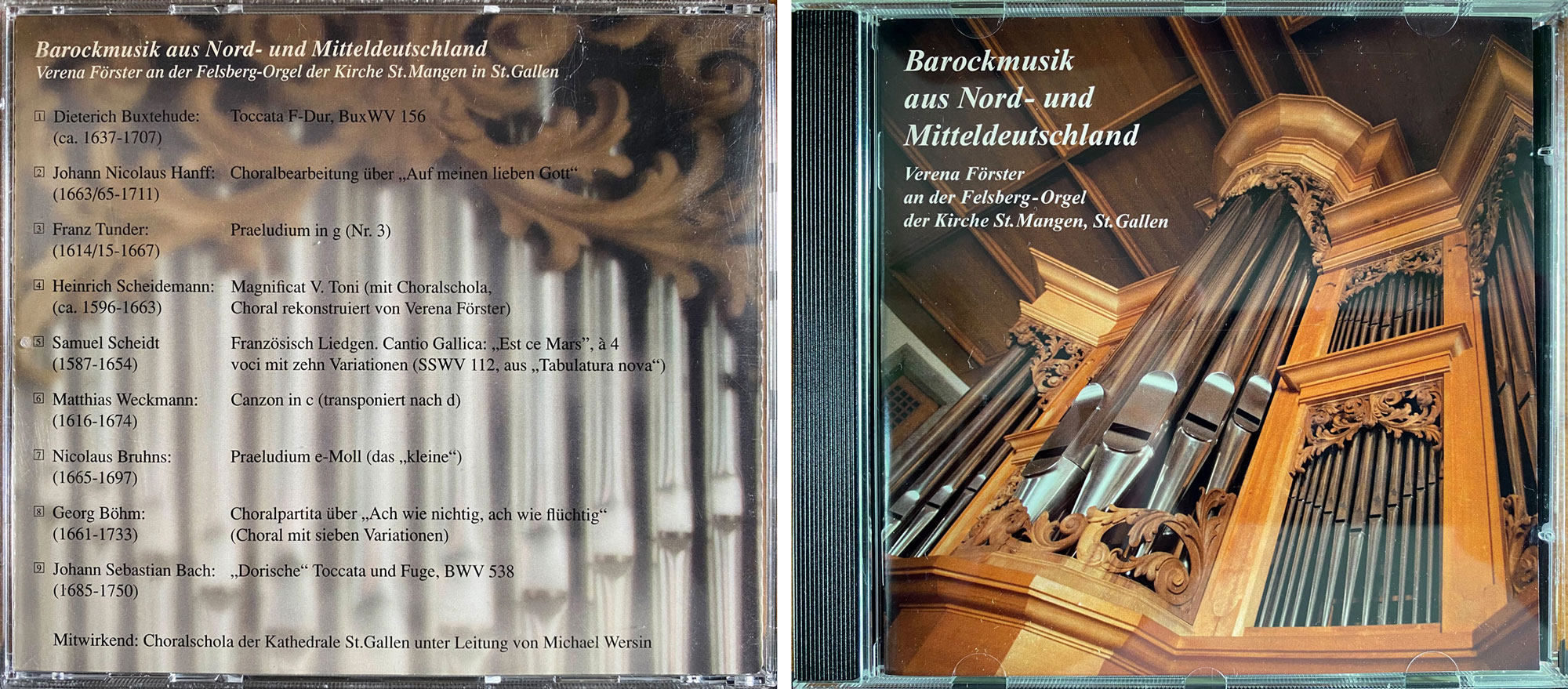 Barockmusik aus Nord- und Mitteldeutschland. Verena Förster an der Felsberg-Orgel der Kirche St. Mangen, St. Gallen, 2014