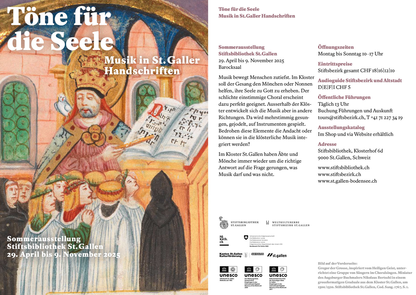 im Rahmen der Öffentlichen Vorlesungsreihe der Stiftsbibliothek und der Universität St. Gallen, „Töne für die Seele – Musik in St. Galler Handschriften“: