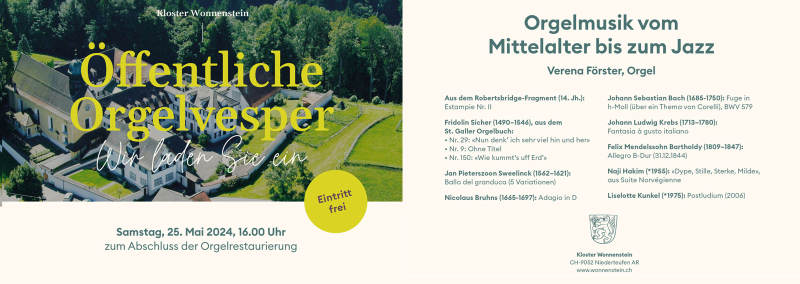 In St. Gallen bietet sich die seltene Möglichkeit, in der Kirche St. Mangen eine im norddeutschen Barockstil erbaute Orgel (Felsberg, 1988) sowie in der Linsebühlkirche ein authentisches deutsch-romantisches Instrument (Goll, 1897) zur Verfügung zu haben. Daneben lädt die neue „quadrophone“ Goll-Orgel in der Kirche St. Laurenzen dazu ein, sich einerseits an moderne Kompositionen zu wagen, und andererseits auszuprobieren, Musik vergangener Zeiten auf ein zeitgenössisches Instrument zu übertragen.
